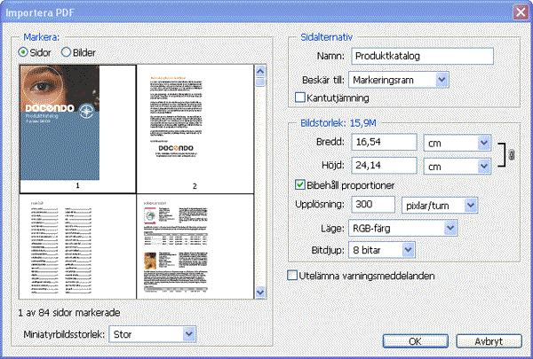 En begränsning med PDF-filer är dock att de enbart kan monteras i vissa tillämpningsprogram. Men om PDF-filerna öppnas i Photoshop och omvandlas till punktbilder med hög upplösning kan resultatet sparas i standardiserade bildfilsformat som fungerar med alla program.