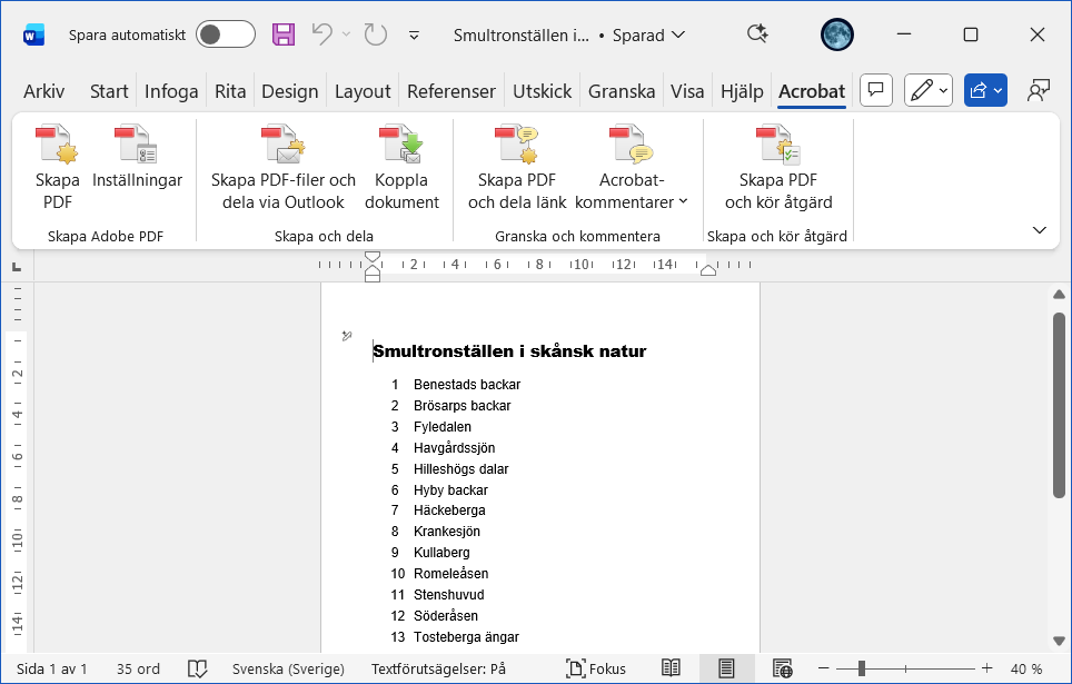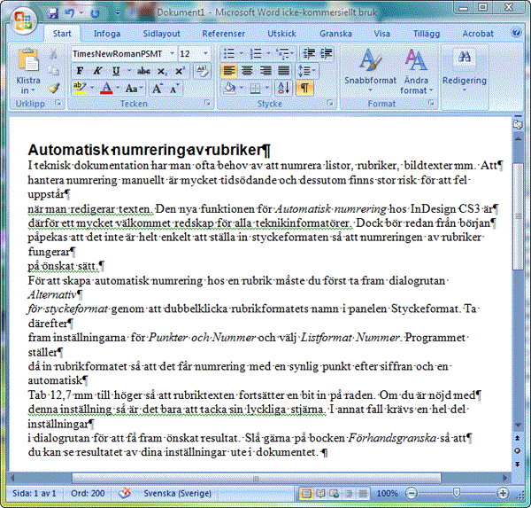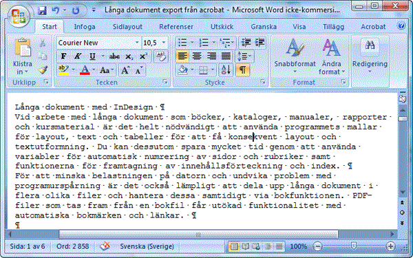 Exempel på oskyddad PDF-fil där texten skall återanvändas i andra program.