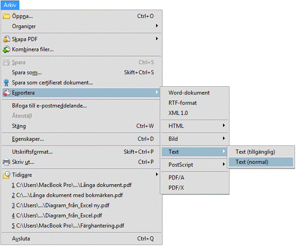 Återanvänd text från PDF-filerMånga som tar del av färdiga PDF-filer har ibland önskemål om att återanvända hela eller delar av texten hos en PDF-fil i dokument hos andra program. Förutsättningen för att detta skall vara möjligt är dock att PDF-filen inte är skyddad mot kopiering av innehållet.