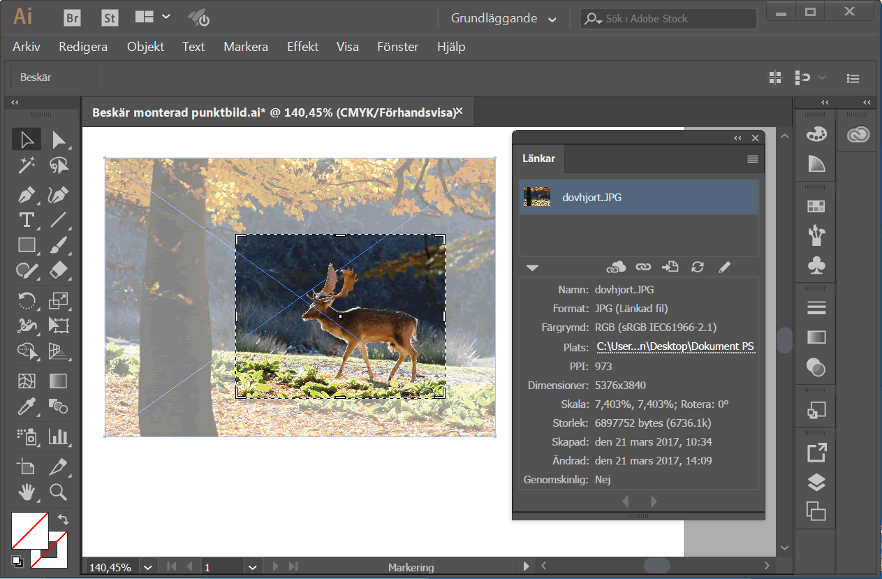 Pågående beskärning av ett monterat fotografi hos Illustrator CC 2017.