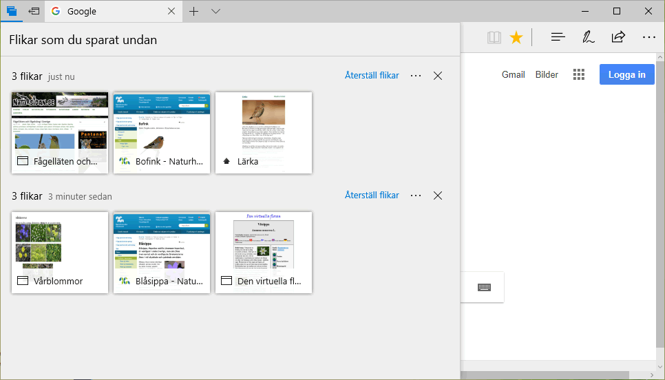 Webbläsaren Edge har flera nya funktioner som gör det lättare att skapa och hantera många flikar med innehåll. Du kan gruppera flera flikar efter typ av innehåll och sen lägga undan dem tillfälligt så att de inte tar onödig plats på skärmen.