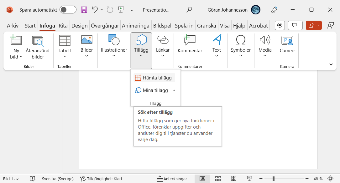 Installera tillägget i Word och PowerPoint