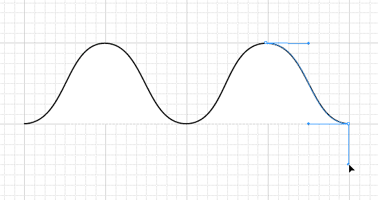 Verktyget Ritstift med underliggande hjälpmedel för att efterjustera banor.