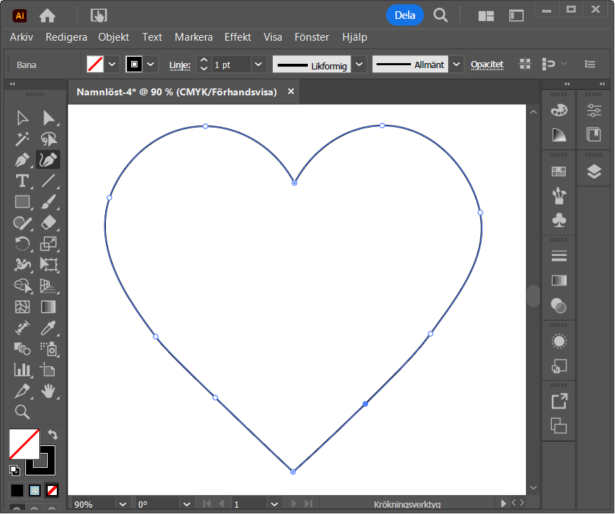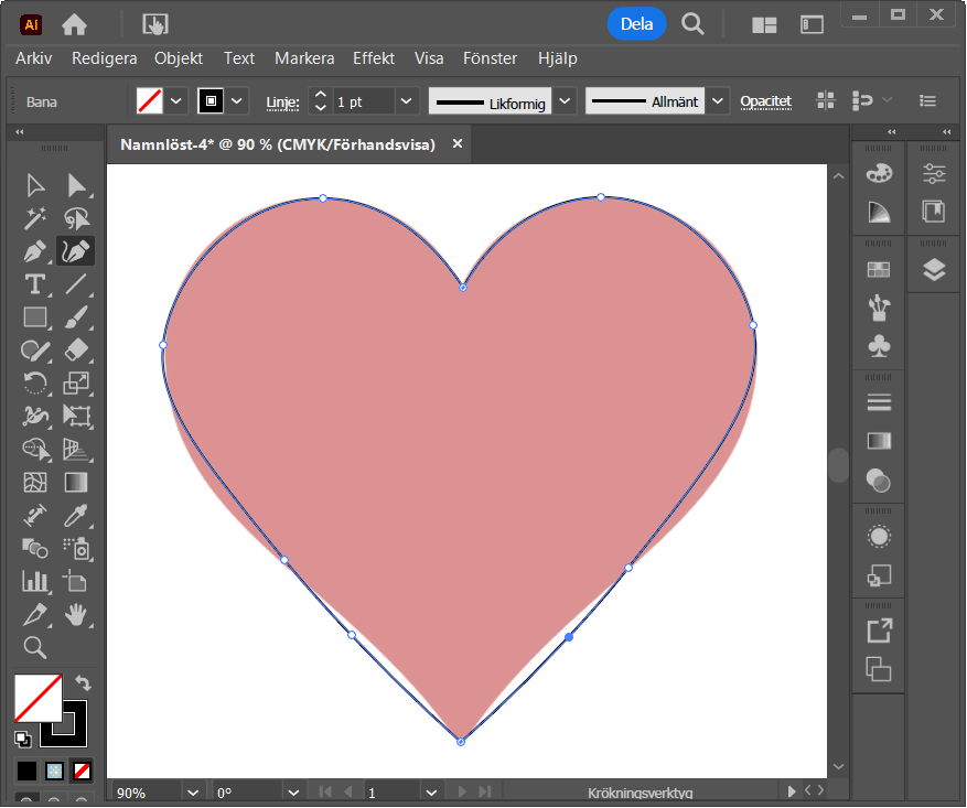 Resultatet av kalkeringen med verktyget Krökning har blivit ett objekt med ett tjugotal ankarpunkter, vilka är förbundna via mjuka banor. Konturerna återger originalbilden i det närmaste perfekt.