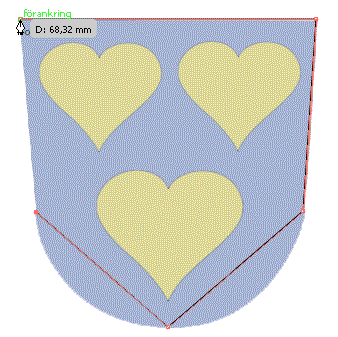Skapa ett motiv genom att konvertera spetsiga hörn till mjuka banorVi skall nu studera ett annat exempel med ett hjärta som motiv. Vi börjar här med att skapa en grov bild av motivet via raka linjer och spetsiga hörn, enligt metoden som tidigare beskrivits i filmen. Några av de spetsiga hörnen konverteras sen till mjuka banor som följer motivets konturer. Använd verktyget Krökning för att skapa ett antal ankarpunkter på lämpliga positioner längs kanten hos den skannade originalbilden. När du bestämmer positioner så välj de där det sker stora riktningsförändringar hos motivets konturer. Tänk på att hålla ner tangenten Alt så att du får raka linjer mellan punkterna. För att ge bättre kontrast mot den röda skannade bilden har jag valt att ge lagret med banorna blå färg.