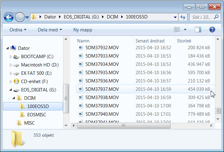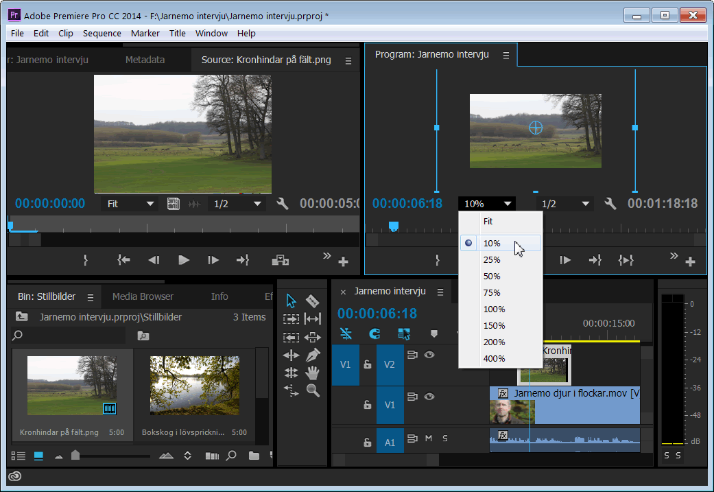 Använd stillbilder i filmenIbland har man inte tillgång till filmklipp som visar alla avsnitt man önskar ha med i filmen. Men ofta är det någon som tagit stillbilder under filminspelningen som dokumentation av arbetet (ibland med iPhone). Numera har de flesta informatörer också ett omfattande bildarkiv med stillbilder som lämpar sig väl för filmer. Stillbilder importeras på samma sätt som filmklipp till ett projekt. För att hålla ordning är det då lämpligt att organisera alla bilder i en eller flera namngivna virtuella mappar (Bin).